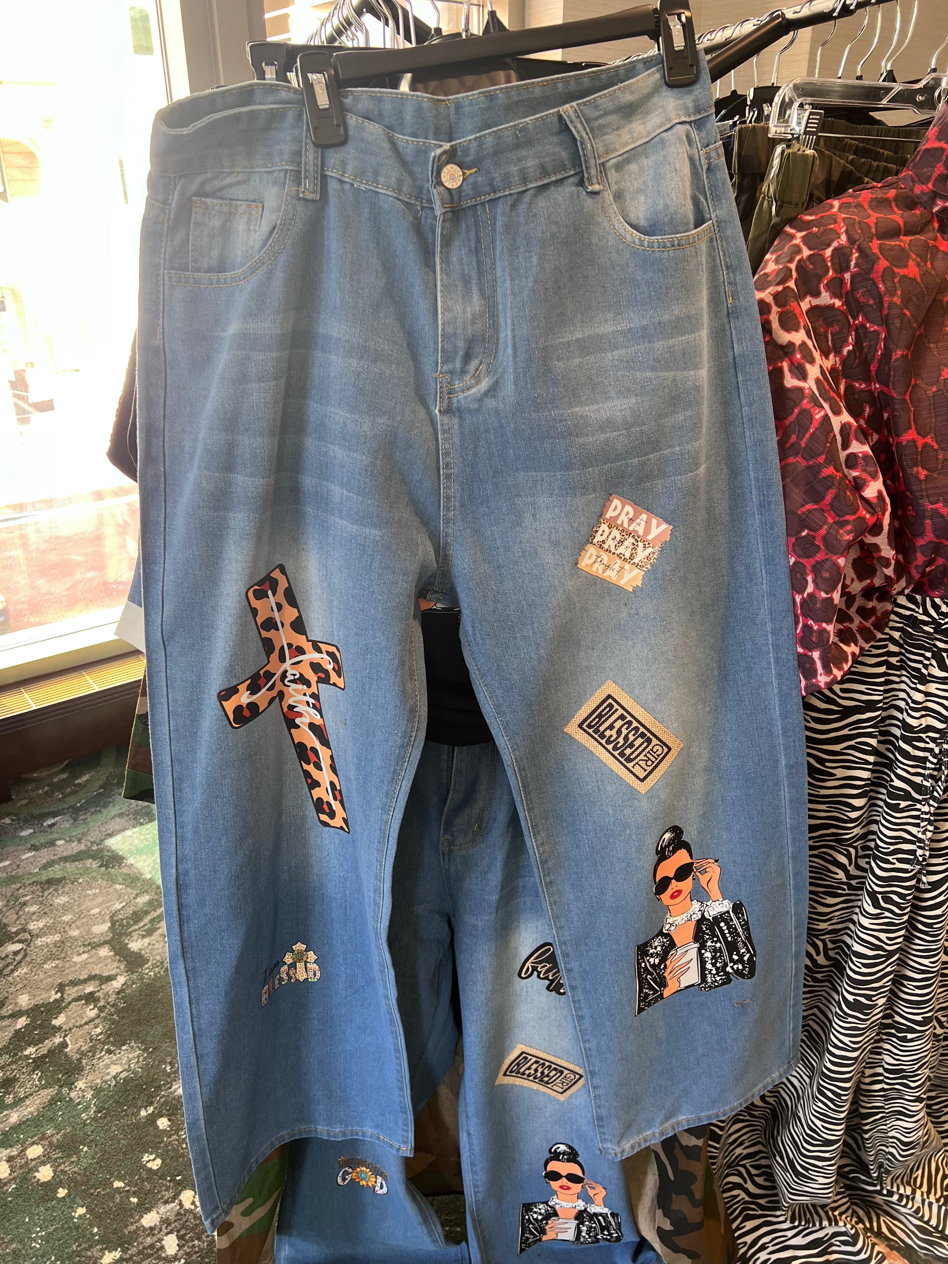 Feeling blessed and coffee time jeans no stretch.
