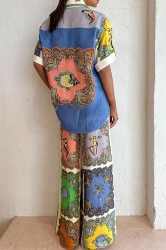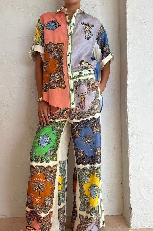 Crafted from a soft and lightweight fabric, The Boho Set features a stylish boho print design on both the shirt and pants. Perfect for lounging in style, this 2 piece set offers comfort and versatility. Elevate your casual wardrobe with The Boho Set.